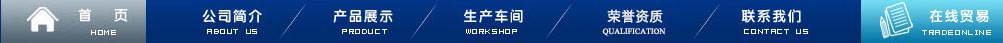 首頁(yè) | 公司簡(jiǎn)介| 產(chǎn)品展示 | 生產(chǎn)車間 | 營(yíng)銷網(wǎng)絡(luò) | 在線貿(mào)易 | 聯(lián)系我們